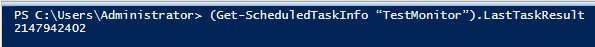 (Get-ScheduledTaskInfo “TestMonitor”).LastTaskResult